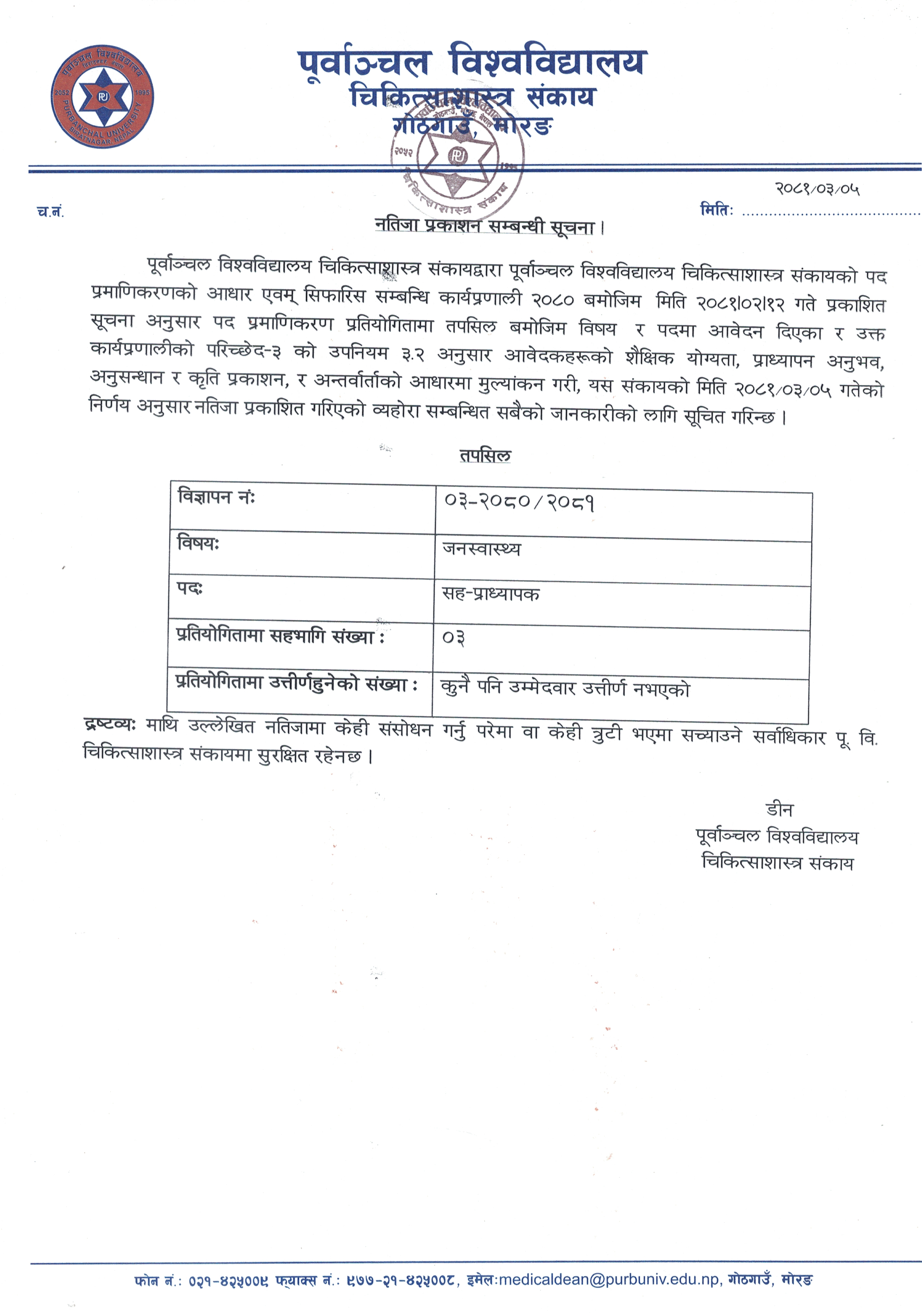 जनस्वास्थ्य (सह-प्राध्यापक) पदको नतिजा प्रकाशन सम्बन्धी सूचना