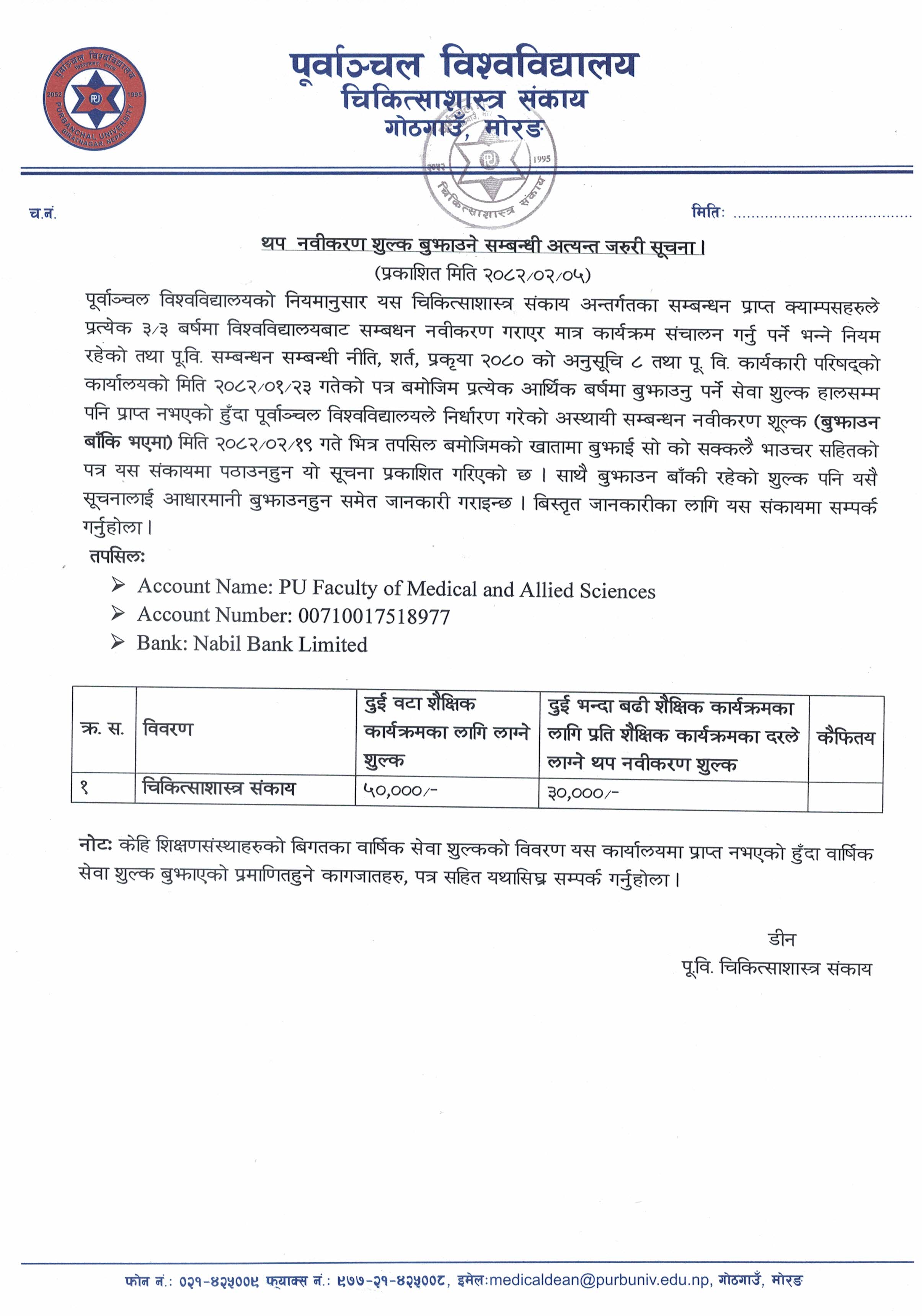 Faculty of Medical Sciencesथप नवीकरण शुल्क बुझाउने सम्बन्धी अत्यन्त जरूरी सूचना ।