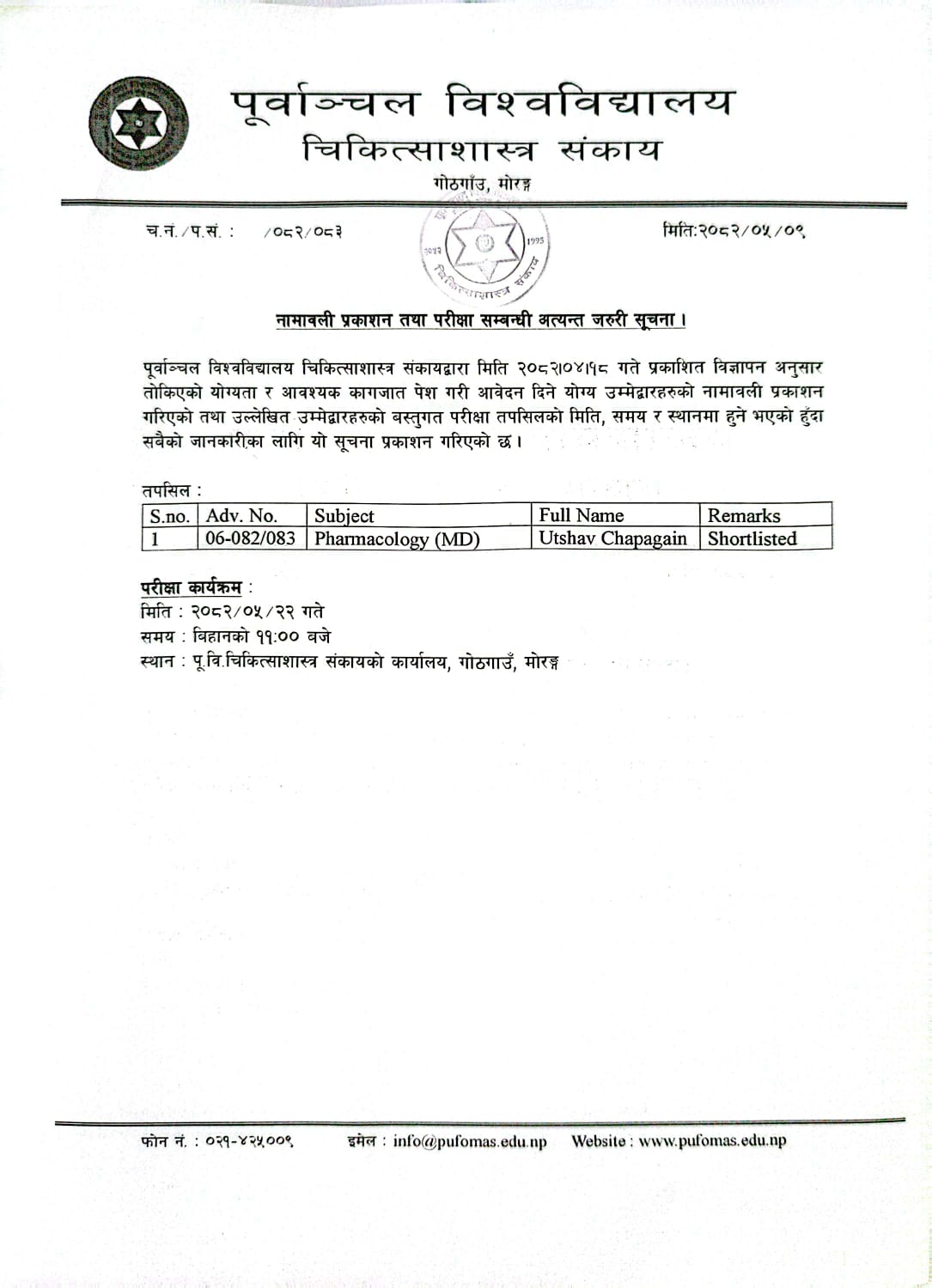 Faculty of Medical Sciencesनामावली प्रकाशन तथा परीक्षा सम्बन्धी अत्यन्त जरुरी सूचना ।